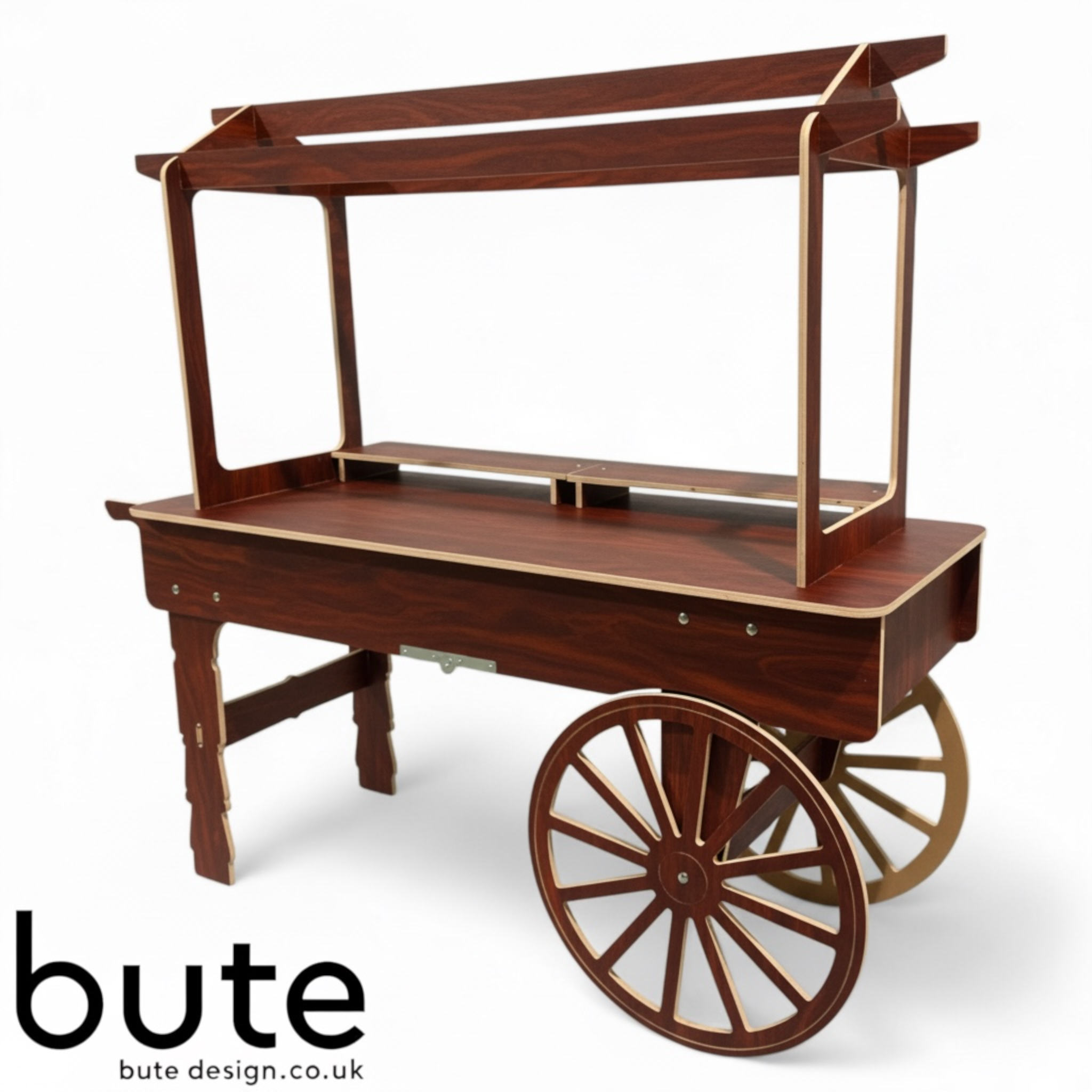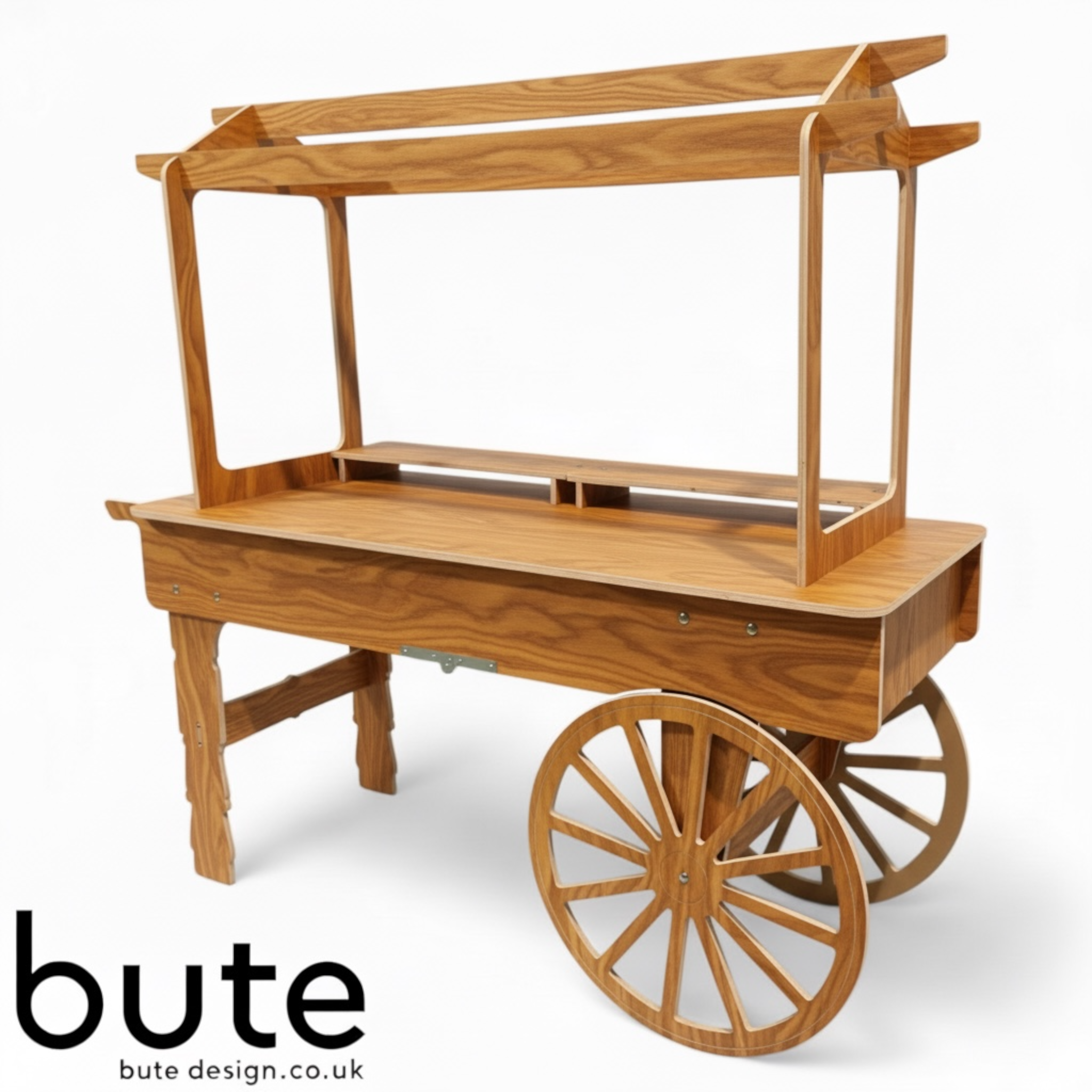 The V3XL Collapsible Wedding Sweet Candy Cart in Plywood by Bute Design. This sweet cart is a must-have for any wedding reception, providing your guests with a delightful treat to indulge in. Crafted from UNPAINTED plywood, this sweet cart is durable and collapsible, making it easy to transport and store. TheΒ V3XL offers a unique and elegant look, perfect for any wedding theme. Ideal for weddings, this sweet cart is a fantastic addition to your wedding supplies.